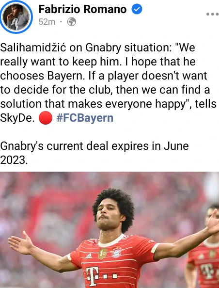 Fulham are in talks with Wolfburg over the signing of right-back Kevin Mbabu on permanent transfer. Arsenal defender Daniel Ballard is closing in on a £2 Million move to Burnley after impressing on loan at Blackpool and Millwall. Bayern Munich Director Salihhamidzic has revealed that the club want to keep Arsenal target Serge Gnabry but are ready to find a solution that could make everyone happy if he does not want to continue at Allianz Arena.