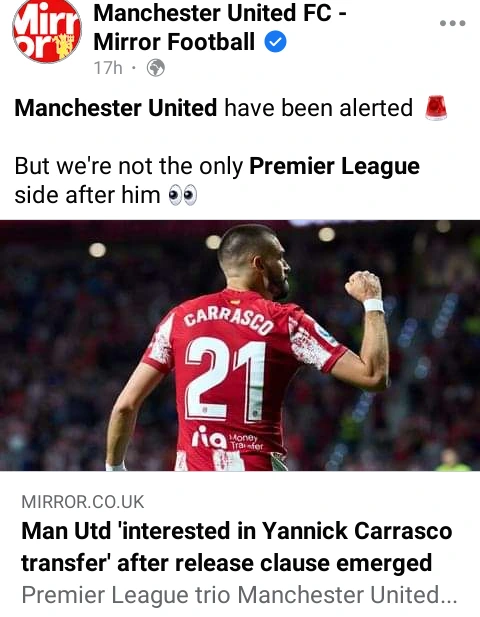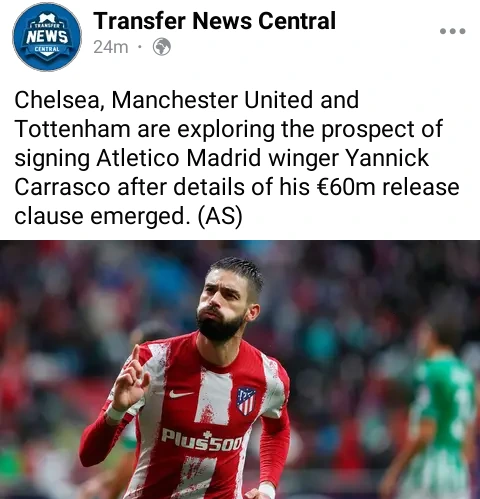 Manchester United, Chelsea and Tottenham are exploring the prospect of signing Atletico Madrid winger Yannick Carrassco after details of his €60 Million release clause emerged. PSG are willing to sell Brazillian forward Neymar if they receive an acceltable offer amid Man United & Chelsea intrests despite the star insisitance that he wants to stay.