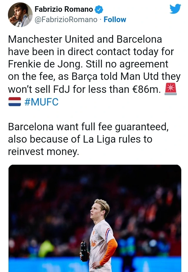 If United manages to overspend for De Jong, given that the Dutch tactician is eager to recruit five players this window, they may find themselves in trouble.