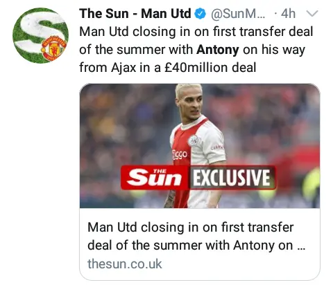 Anthony is keen on reuniting with Ten Hag in an attempt to sharpen United's misfiring attacking options of Marcus Rashford, Jadon Sancho and Anthony Elanga.