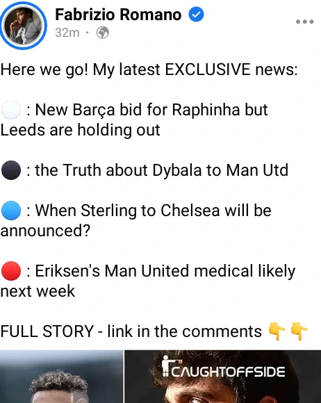 Manchester United are close to agreeing personal terms with free agent Goalkeeper Thomas Stakosha from Lazio. Man United have scheduled Christian Eriksen medocals at Carrington next week and have send his contracts to the lawyers to review but being officially unveiled. Aston Villa have reached an agreement with Sevilla for left back Ludwig Augustinsson, which is a loan deal with an option to buy. Brighton will hold contract extension talks with Man City target Marc Cucurella with a new contract set to be until.June 2026. Frenkie De Jong has reportedly turned down move to Man United due to lack of UEFA Champions League Football. Alaves have signed centre-back Anderson Aroyo on a season long loan deal from Liverpool.