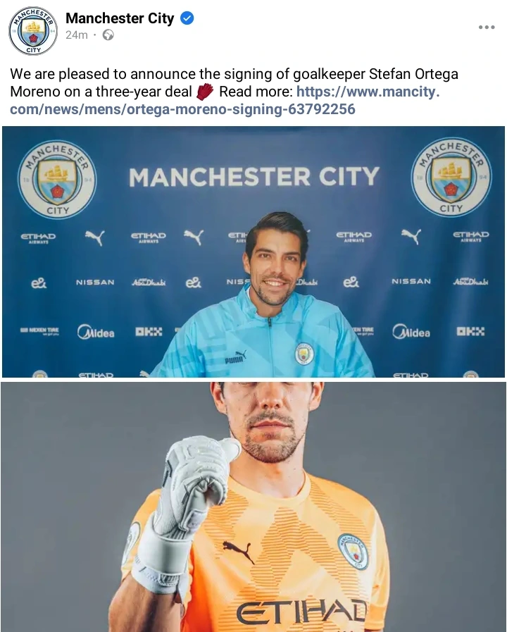 Premier League Champions, Manchester City have announced the signing of goalkeeper Stefan Ortega on a Bosman deal from German club, Arminia Bielefeld.