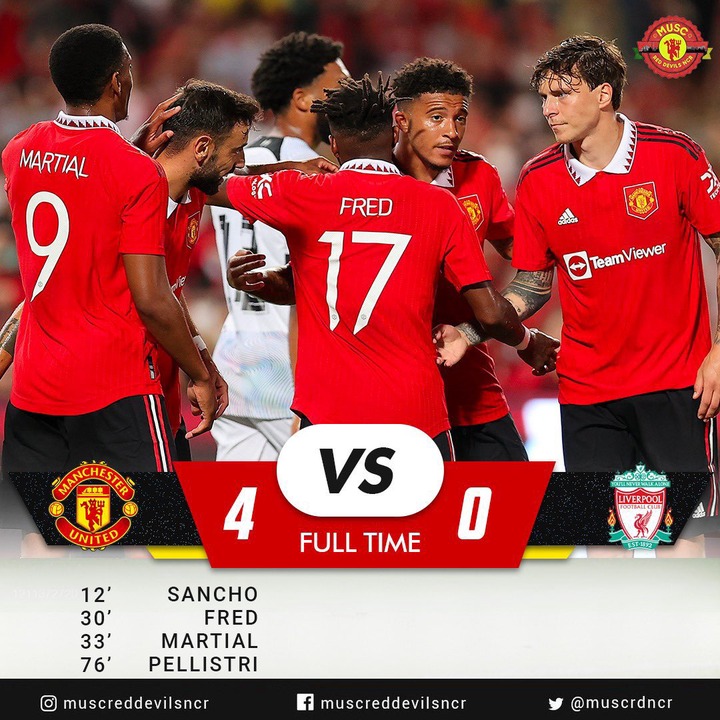 Goals from Jadon Sancho, Anthony Martial, Fred and Pellistri were enough to give Man United the win. Five (5) players played exceptionally well in today's match.