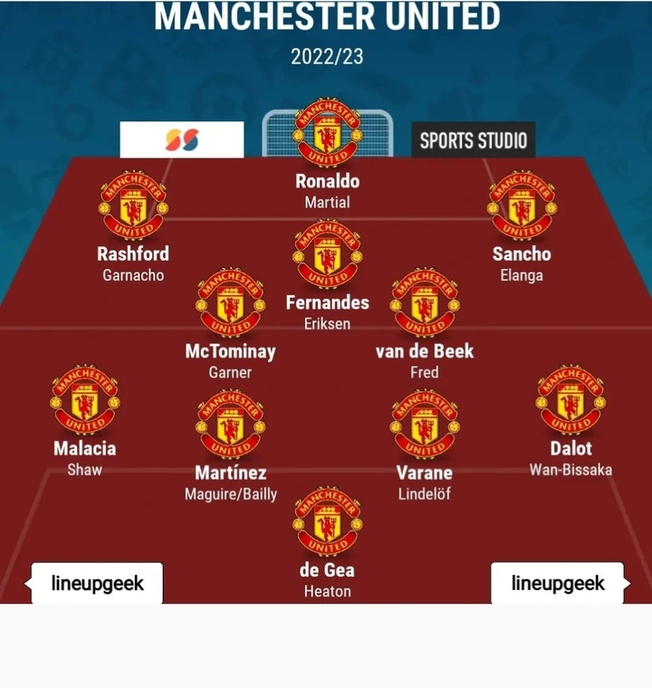 Erik Ten Hag will likely start David De Gea as his number one goalie this season. He might start Lisandro Martinez ahead of Maguire in the centre-back and partner with Raphael Varane. This combination will make Manchester united to be solid in the defense. Malacia could start ahead of Luke Shaw in the left-back after his impressive performance in the Pre-season games. Christian Eriksen played a single game in the Pre-season but will likely start from the bench while Bruno Fernandes will maintain his starting spot in the team.