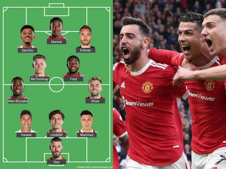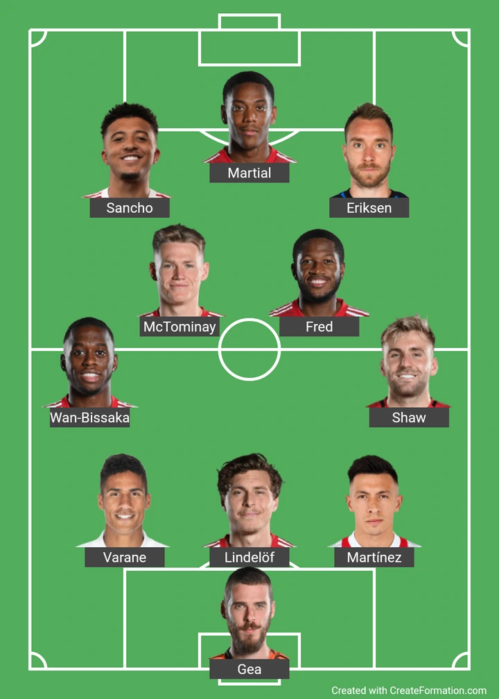 Martial, Sancho and Eriksen could lead the Red Devils' attack this weekend. Ronaldo might be benched after an awful performance against Brentford last week.