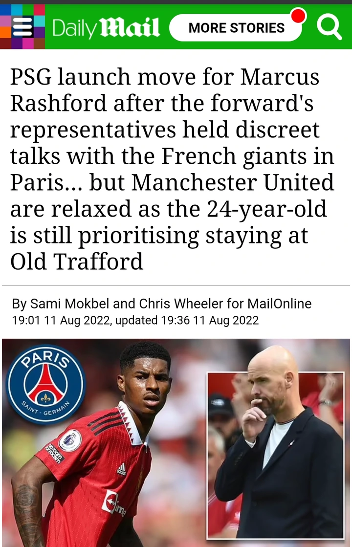 The Ligue One Giants PSG have kicked off discussion with the entourage of England international and Manchester United striker Marcus Rashford.