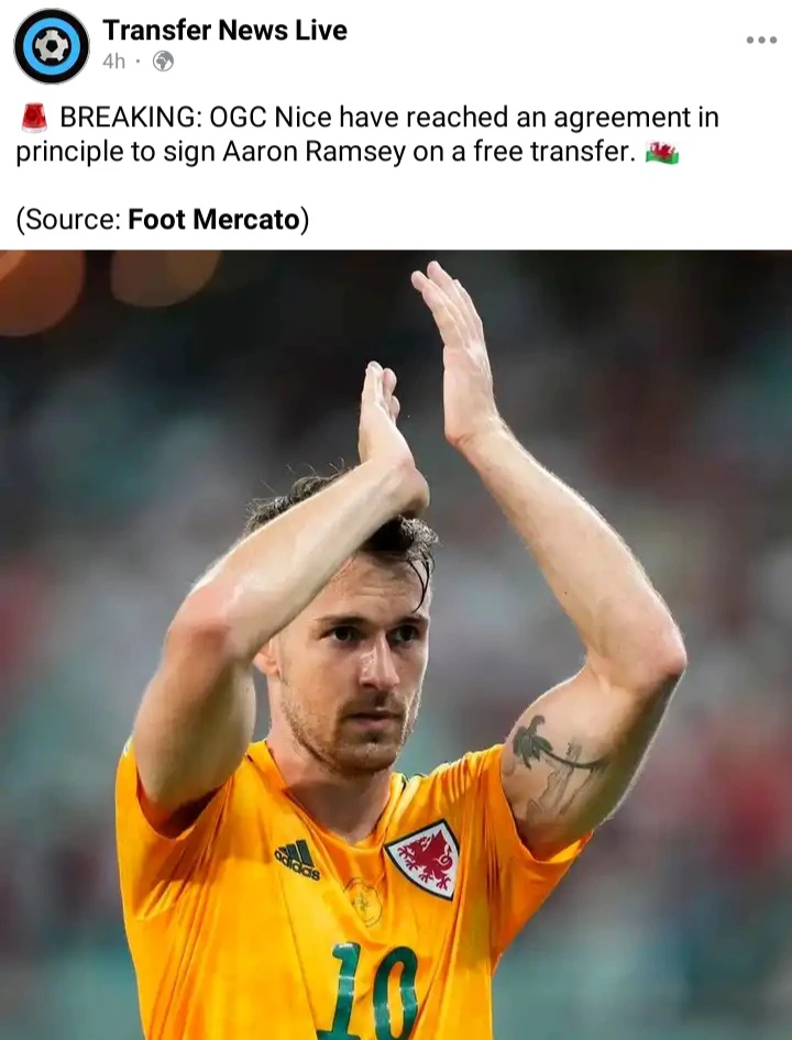 Former Arsenal midfielder Aaron Ramsey has reached an agreement with French club OGC Nice on a free transfer after his contract was terminated by Juventus