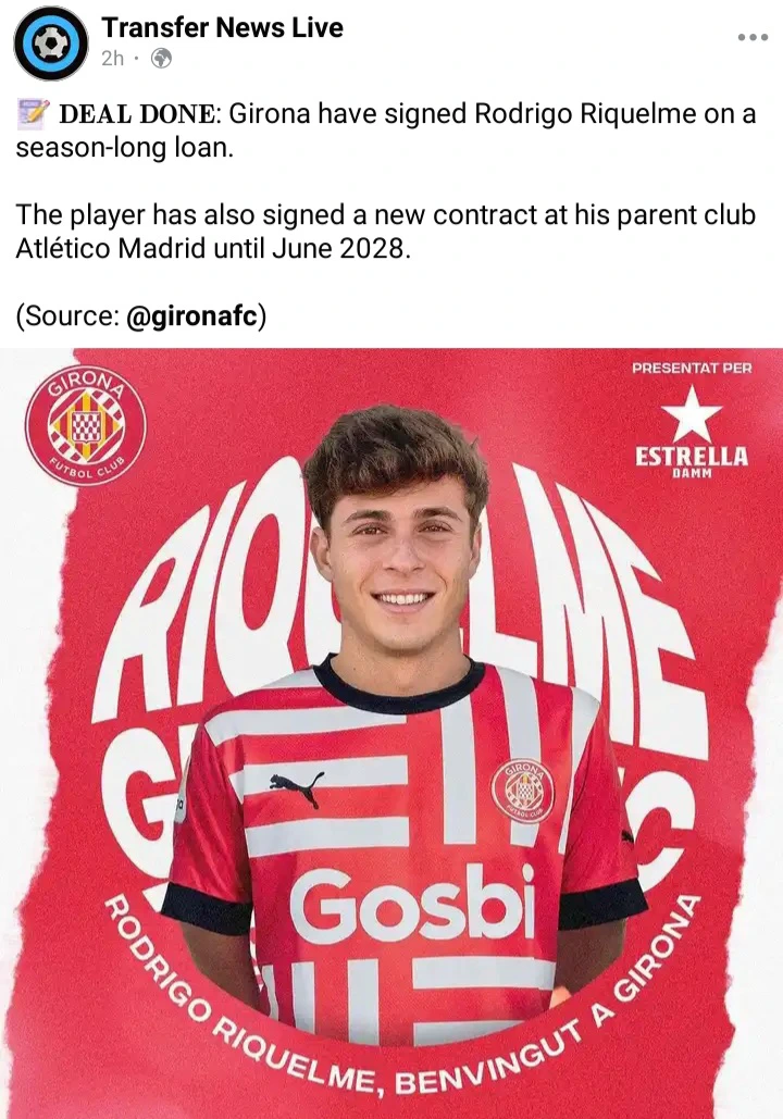 Spanish club Girona have signed Rodrigo Riquelme from Atletico Madrid on a season-long loan