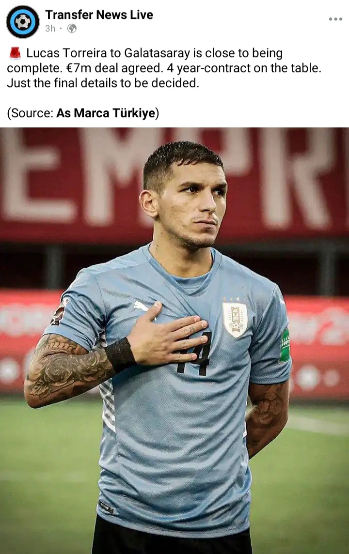 Arsenal have accepted Galatasaray's bid for Lucas Torreirra on a permanent deal, with just personal terms left to be agreed