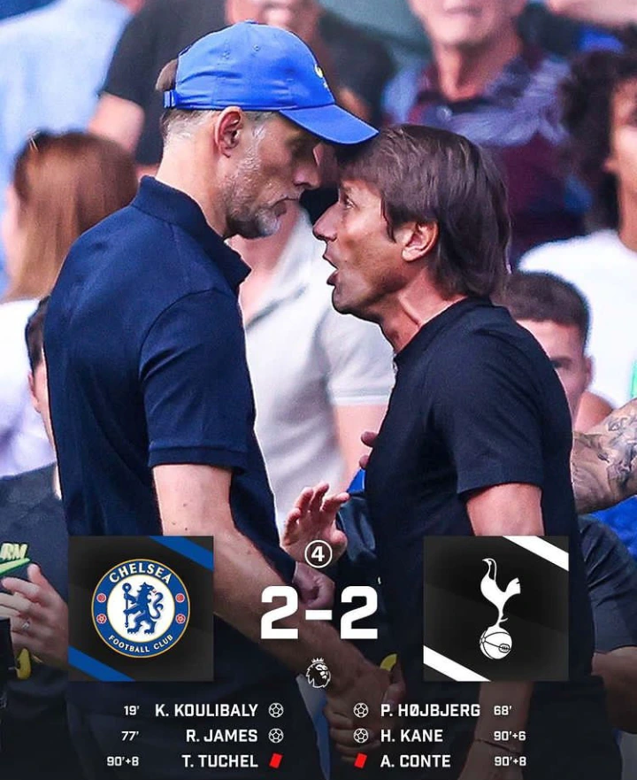 After 90 minutes of play, the match ended as a 2-2 draw. The four goals were scored by Koulibaly, Hojbjerg James and Reece James.