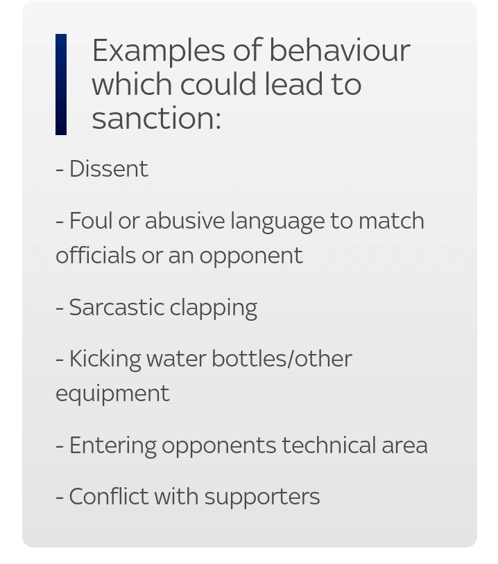 If a manager collects four yellow cards, they would receive a one-match ban, eight would result in a two-match ban, 12 a three-match ban and 16 would result in them facing a FA disciplinary panel.